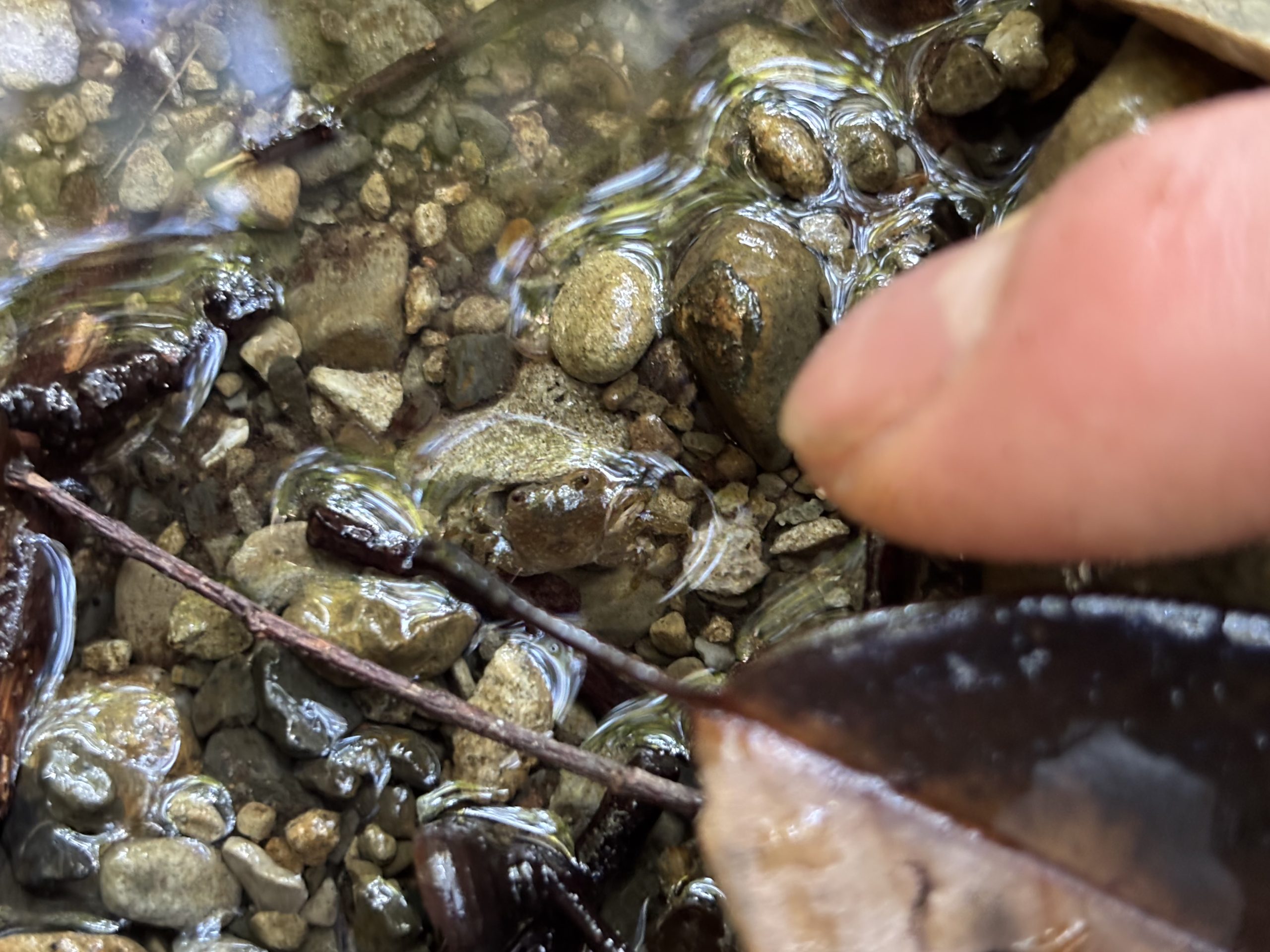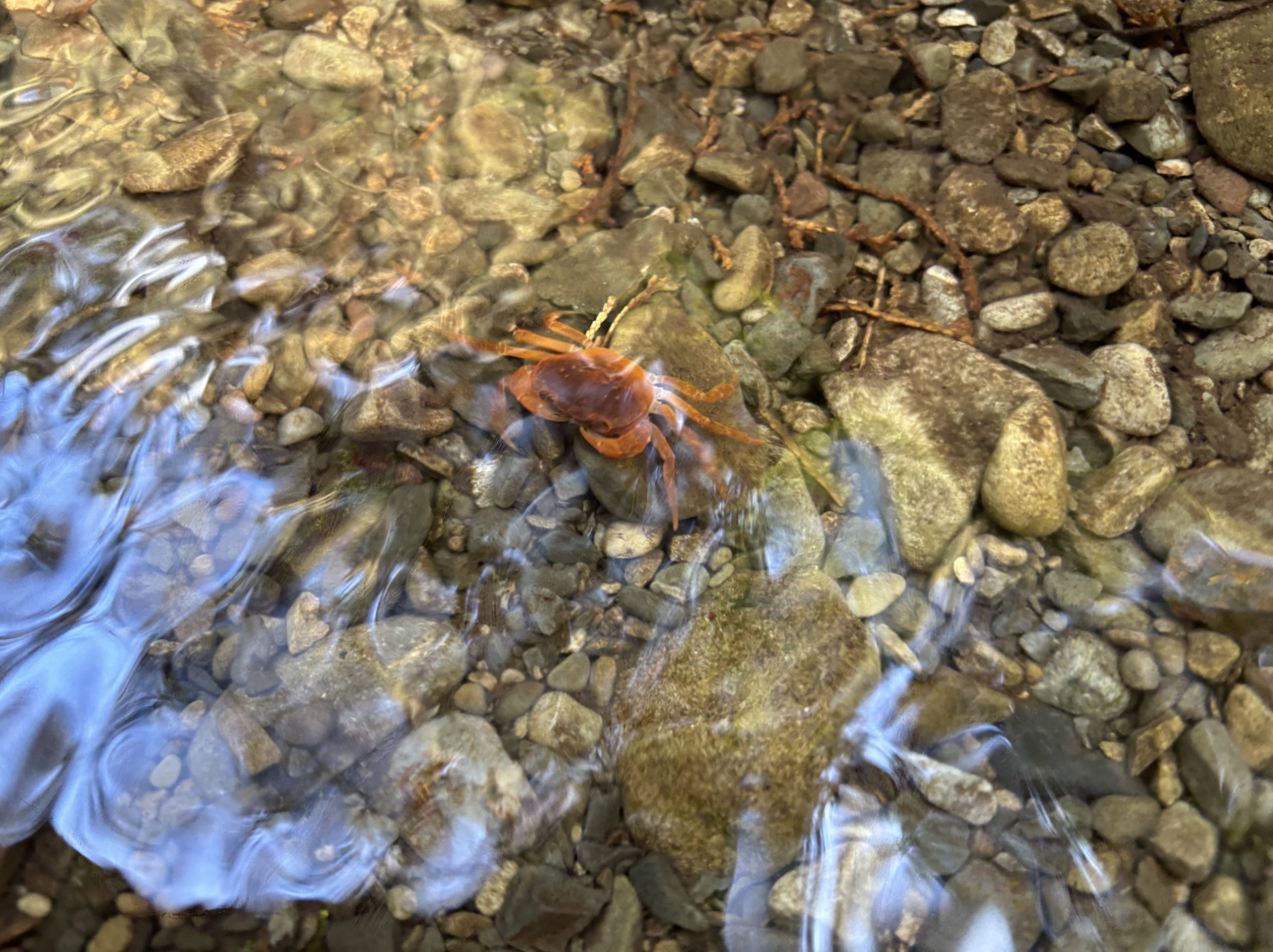 オレンジ色が見えますね。サワガニです。(やらせじゃないですよ~)