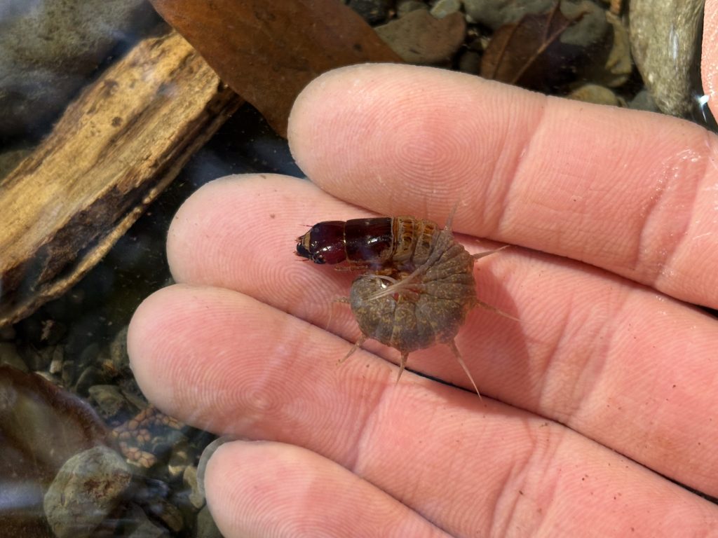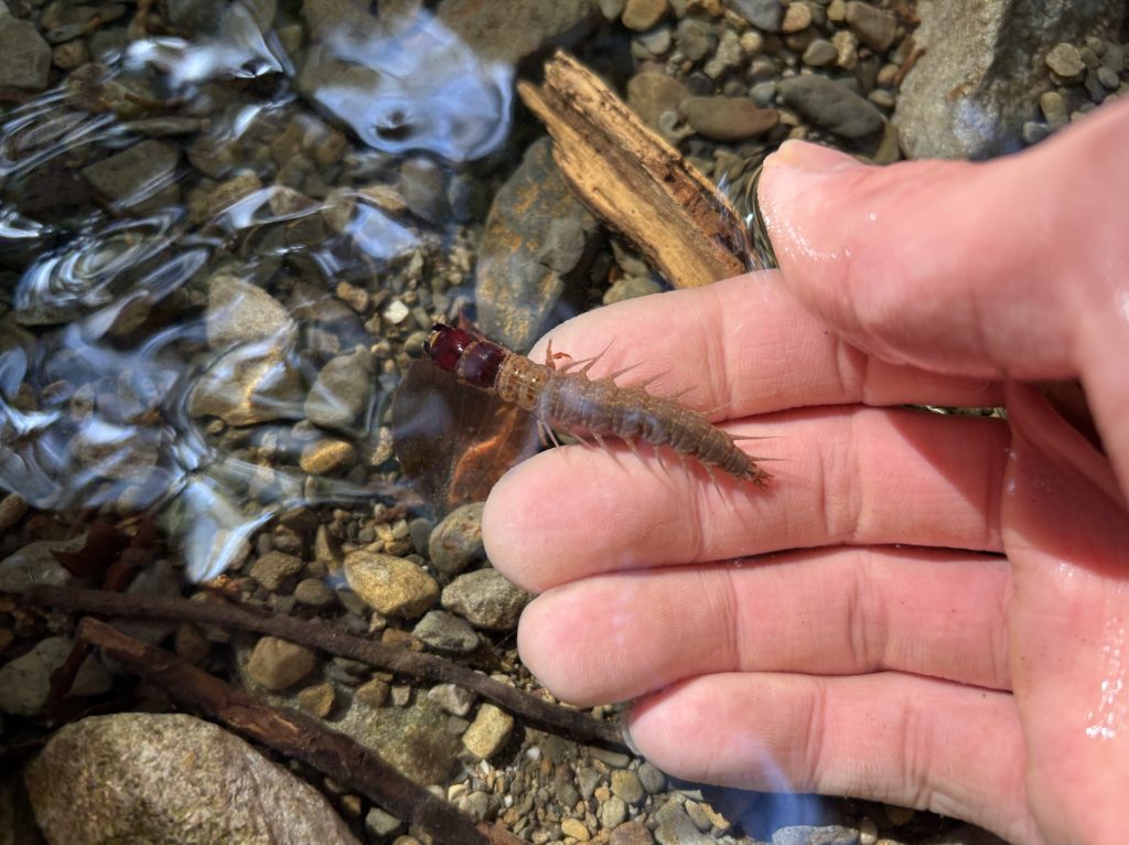 サワガニ探し中に出会ったヤマトクロスジヘビトンボの幼虫